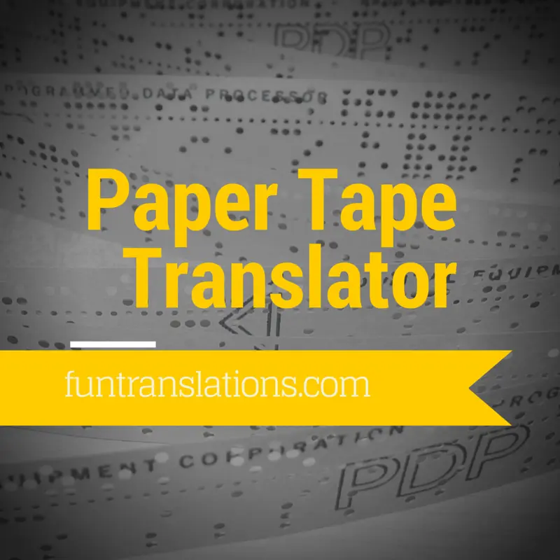 Convert from English to Paper Tape. Punched tape or perforated paper tape is a form of data storage, consisting of a long strip of paper in which holes are punched to store data. Now effectively obsolete, it was widely used during much of the twentieth century for teleprinter communication, for input to computers of the 1950s and 1960s, and later as a storage medium for minicomputers and CNC machine tools.